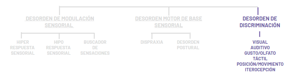 La discriminación sensorial se refiere a la habilidad que tiene el niño de percibir las cualidades del estímulo y darles un significado adecuado (distinguir las características específicas de objetos, sabores, olores, sonidos, etc.).